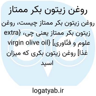 {extra virgin olive oil} [علوم و فنّاوری غذا] روغن زیتون بکری که میزان اسید چرب آزاد یا اولئیک اسید آن کمتر از یک درصد و درجۀ ارزیابی حسی آن 6/5 یا بالاتر باشد