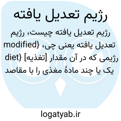 {modified diet} [تغذیه] رژیمی که در آن مقدار یک یا چند مادۀ مغذی را با مقاصد درمانی تغییر می دهند