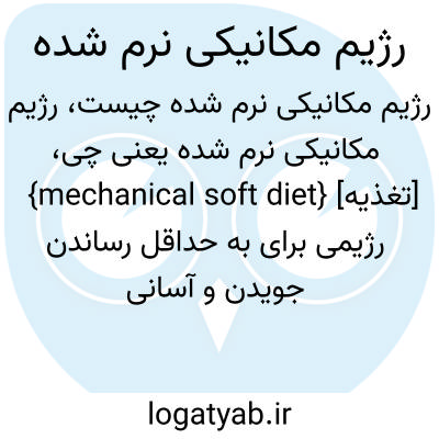 {mechanical soft diet} [تغذیه] رژیمی برای به حداقل رساندن جویدن و آسانی بلع که در آن طیفی از غذاها را به کمک انواع دستگاه های خُردکن نرم می کنند