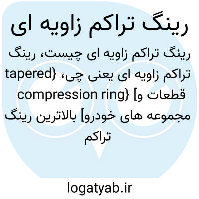 {tapered compression ring} [قطعات و مجموعه های خودرو] بالاترین رینگ تراکم پیستون که دیوارۀ بیرونی آن را برای درزبندی بهتر شیب دار می سازند متـ. حلقۀ تراکم زاویه ای