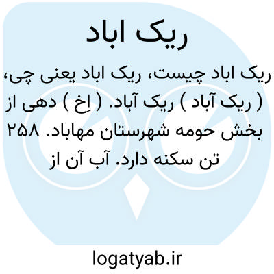 ( ریک آباد ) ریک آباد. ( اِخ ) دهی از بخش حومه شهرستان مهاباد. 258 تن سکنه دارد. آب آن از رودخانه لاوین و محصول عمده آنجا غلات و توتون و حبوب و صنایع دستی زنان جاجیم بافی است. ( از فرهنگ جغرافیایی ایران ج 4 ).