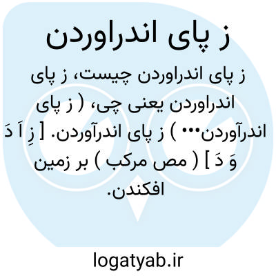 ( ز پای اندرآوردن••• ) ز پای اندرآوردن. [ زِ اَ دَ وَ دَ ] ( مص مرکب ) بر زمین افکندن. از پای اندرآوردن. مغلوب ساختن: