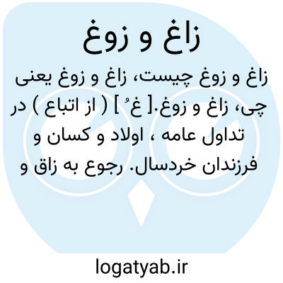 زاغ و زوغ.[ غ ُ ] ( از اتباع ) در تداول عامه، اولاد و کسان و فرزندان خردسال. رجوع به زاق و زیق و زاغ و زیغ شود.