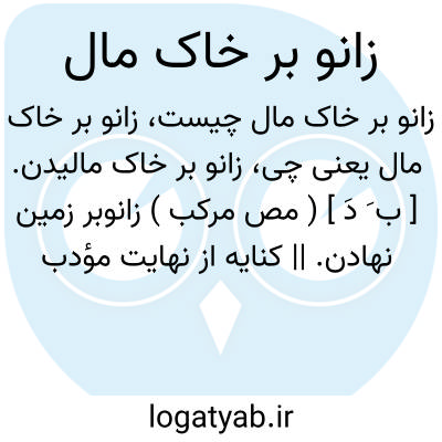 زانو بر خاک مالیدن. [ ب َ دَ ] ( مص مرکب ) زانوبر زمین نهادن. || کنایه از نهایت مؤدب و متواضع بودن است. ( مجموعه مترادفات ):