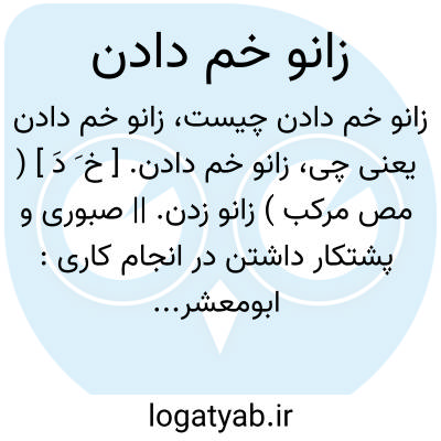 زانو خم دادن. [ خ َ دَ ] ( مص مرکب ) زانو زدن. || صبوری و پشتکار داشتن در انجام کاری: ابومعشر... کارد از میان کتاب بیرون آورد و بشکست و بینداخت و زانو خم داد و پانزده سال تعلم کرد تا در علم نجوم رسید بدان درجه که رسید. ( چهارمقاله عروضی چ معین ص 91 ).