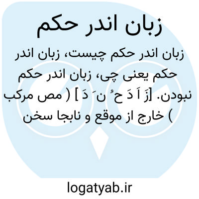 زبان اندر حکم نبودن. [زَ اَ دَ ح ُ ن َ دَ ] ( مص مرکب ) خارج از موقع و نابجا سخن گفتن. اختیار زبان خود را نداشتن: