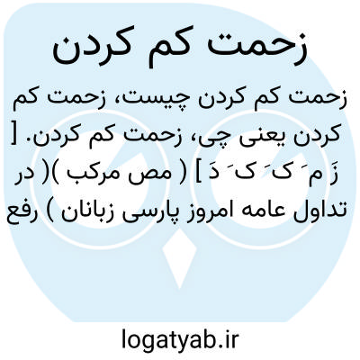 زحمت کم کردن. [ زَ م َ ک َ ک َ دَ ] ( مص مرکب )( در تداول عامه امروز پارسی زبانان ) رفع تصدیع کردن و زحمت بر گرفتن. این ترکیب بیشتر بعنوان تعارف و گاه نیز برای طنز و سخریه بکار میرود و در مورد اخیرگویند مخاطب خود را که احیاناً صاحب خانه و میزبانست در حقیقت متهم میکند به این که بر خلاف تظاهری که دارد ملاقات با این میهمان را زحمت و تصدیع میشمارد.