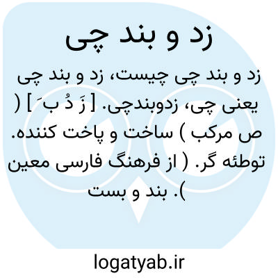 زدوبندچی. [ زَ دُ ب َ ] ( ص مرکب ) ساخت و پاخت کننده. توطئه گر. ( از فرهنگ فارسی معین ). بند و بست کننده.