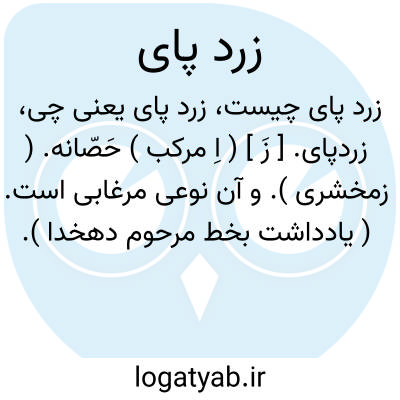 زردپای. [ زَ ] ( اِ مرکب ) حَصّانه. ( زمخشری ). و آن نوعی مرغابی است. ( یادداشت بخط مرحوم دهخدا ).