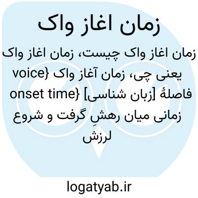 {voice onset time} [زبان شناسی] فاصلۀ زمانی میان رهشِ گرفت و شروع لرزش تارآواها در همخوان های انفجاری