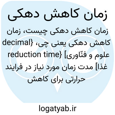 {decimal reduction time} [علوم و فنّاوری غذا] مدت زمان مورد نیاز در فرایند حرارتی برای کاهش تعداد ریزاندامگان های غذا به یک دهم میزان اولیه متـ. عدد دِ D-value
