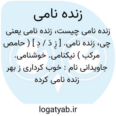 زنده نامی. [ زِ دَ / دِ ] ( حامص مرکب ) نیکنامی. خوشنامی. جاویدانی نام: