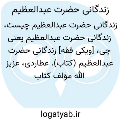 [ویکی فقه] زندگانی حضرت عبدالعظیم (کتاب). عطاردی، عزیز الله مؤلف کتاب زندگانی حضرت عبد العظیم (علیه السلام) می باشد.