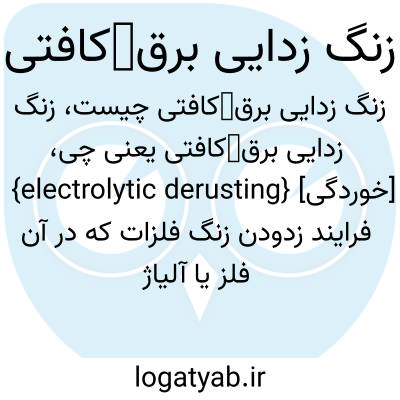 {electrolytic derusting} [خوردگی] فرایند زدودن زنگ فلزات که در آن فلز یا آلیاژ زنگ زده را در یک حمام برق کافتی قلیایی در جای آند قرار می دهند و به تناوب جریان را معکوس می کنند