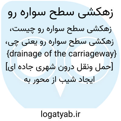 {drainage of the carriageway} [حمل ونقل درون شهری جاده ای] ایجاد شیب از محور به سمت هر دو برِ سطح راه به منظور تخلیۀ آب های سطحی