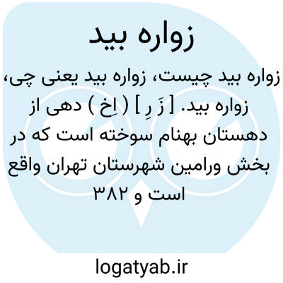 زواره بید. [ زَ رِ ] ( اِخ ) دهی از دهستان بهنام سوخته است که در بخش ورامین شهرستان تهران واقع است و 382 تن سکنه دارد. ( از فرهنگ جغرافیایی ایران ج 1 ).