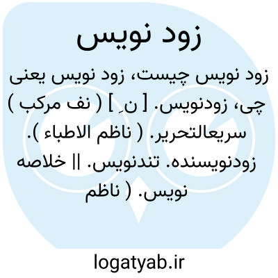 زودنویس. [ ن ِ ] ( نف مرکب ) سریعالتحریر. ( ناظم الاطباء ). زودنویسنده. تندنویس. || خلاصه نویس. ( ناظم الاطباء ).
