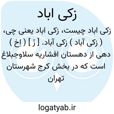 ( زکی آباد ) زکی آباد. [ زَ ] ( اِخ ) دهی از دهستان افشاریه سلاوجبلاغ است که در بخش کرج شهرستان تهران واقع است و 767 تن سکنه دارد. ( از فرهنگ جغرافیایی ایران ج 1 ).