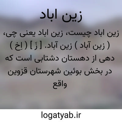 ( زین آباد ) زین آباد. [ زَ ] ( اِخ ) دهی از دهستان دشتابی است که در بخش بوئین شهرستان قزوین واقع است و 506 تن سکنه دارد. ( از فرهنگ جغرافیایی ایران ج 1 ).
