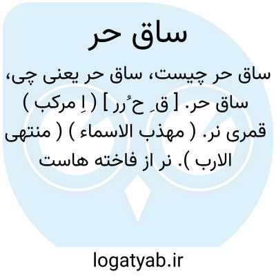 ساق حر. [ ق ِ ح ُرر ] ( اِ مرکب ) قمری نر. ( مهذب الاسماء ) ( منتهی الارب ). نر از فاخته هاست بواسطه آنکه حکایت صدای او ساق حر است. ( شرح قاموس ). فاخته نر. ( ناظم الاطباء ). ذکر القماری. ( قطر المحیط ). || قمری بچه. ( دهار ). || کبوتر است و حِرّ فرخ اوست. ( شرح قاموس ). کبوتر است و بچه آن. ( منتهی الارب ) ( آنندراج ). کبوتر نر. ( دهار ) ( مهذب الاسماء ). || وَرَشان و آن مرغی است مانند کبوتر و وحشی است. حَیْذَوان یا حَیذُوان.