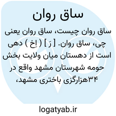 ساق روان. [ رَ ] ( اِخ ) دهی است از دهستان میان ولایت بخش حومه شهرستان مشهد واقع در 34هزارگزی باختری مشهد، و2هزارگزی جنوب راه شوسه مشهد به قوچان. جلگه، و هوایش معتدل، و آبش از قنات، و محصولش غلات است، و 248 تن سکنه دارد که به زراعت و مالداری اشتغال دارند. راه آن مالرو است. ( از فرهنگ جغرافیائی ایران ج 9 ).