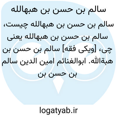 [ویکی فقه] سالم بن حسن بن هبةالله. ابوالغنائم امین الدین سالم بن حسن بن هبةالله بن محفوظ (۵۷۷ -۳ جمادی الاخر ۶۳۷ق /۱۱۸۱-۳۱ دسامبر ۱۲۳۹م )، محدث، فقیه شافعی و ادیب است.
