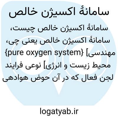 {pure oxygen system} [مهندسی محیط زیست و انرژی] نوعی فرایند لجن فعال که در آن حوض هوادهی سرپوشیده است و به جای هوا اکسیژن خالص به حوض وارد می شود و بخشی از گاز برای کاهش غلظت کربن دی اکسید از سامانه خارج می شود