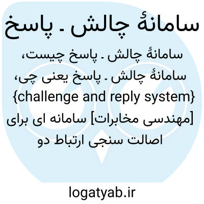 {challenge and reply system} [مهندسی مخابرات] سامانه ای برای اصالت سنجی ارتباط دو سامانه و امکان دسترسی آنها به یکدیگر که در آن پایانۀ برخوانده با رشته کد ویژه ای، شبیه کدِ به کاررفته در درخواست پایانۀ برخوان، خود را معرفی می کند