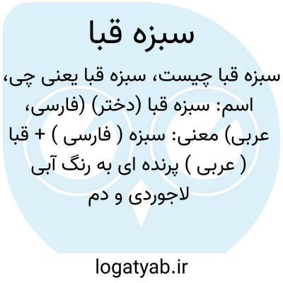 معنی: سبزه ( فارسی ) + قبا ( عربی ) پرنده ای به رنگ آبی لاجوردی و دم آبی مایل به سبز