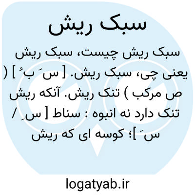 سبک ریش. [ س َ ب ُ ] ( ص مرکب ) تنک ریش. آنکه ریش تنک دارد نه انبوه: سناط [ س ِ / س َ ]؛ کوسه ای که ریش نباشد آن را، یا مرد سبک ریش در رخسار، یا آنکه ریش بر زنخ آن باشد نه بر عارض. ( منتهی الارب ). زِبْرِقان. اَمْلَط. اَمْرَط. اَخْرَط. ( منتهی الارب ).