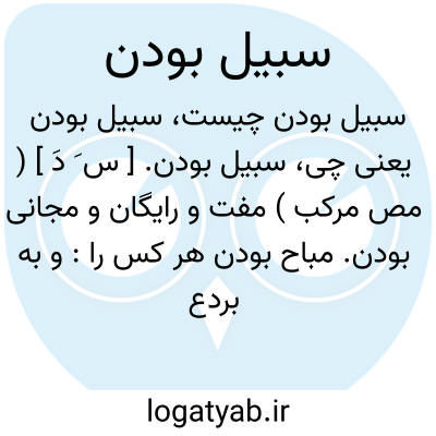 سبیل بودن. [ س َ دَ ] ( مص مرکب ) مفت و رایگان و مجانی بودن. مباح بودن هر کس را: و به بردع درختان تود سبیل است بسیار. ( حدود العالم ).