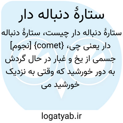 {comet} [نجوم] جسمی از یخ و غبار در حال گردش به دور خورشید که وقتی به نزدیک خورشید می رسد، بخشی از آن بخار می شود و دُم بلندی به دنبال هستۀ آن در فضا کشیده می شود متـ. دنباله دار