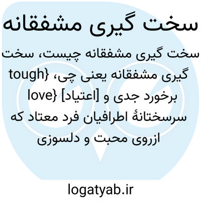 {tough love} [اعتیاد] برخورد جدی و سرسختانۀ اطرافیان فرد معتاد که ازروی محبت و دلسوزی است و هدف از آن ایجاد مسئولیت پذیری و توانایی حل مشکلات در فرد است
