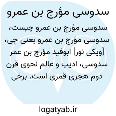 [ویکی نور] ابوفید مؤرج بن عمر سدوسی، ادیب و عالم نحوی قرن دوم هجری قمری است. برخی نام او را «مرثد» دانسته و از «مؤرج» به عنوان لقب وی یاد کرده اند. در باره دوران طفولیت و زادگاه وی اطلاعی در دست نیست. در برخی منابع آمده که وی از بادیه به بصره آمد و به آموختن قیاس در محضر ابوزید انصاری پرداخت. همچنین به نظر می رسد که وی قبل از آنکه مأمون عباسی به حکومت رسد، به وی پیوسته و همراه او از عراق به خراسان سفر کرده و ابتدا در شهر مرو سکنا گزیده و سپس به نیشابور رفته و در آنجا اقامت گزیده و از محضر عالمان آن دیار بهره برده است، سپس به جرجان رفته و از آنجا به بصره بازگشته و در همان جا درگذشته است. برخی، از سال 204ق، به عنوان سال درگذشت وی یاد کرده اند؛ درحالی که سال 195ق؛ یعنی سالی که ابونواس در آن درگذشت، صحیح تر به نظر می رسد.
