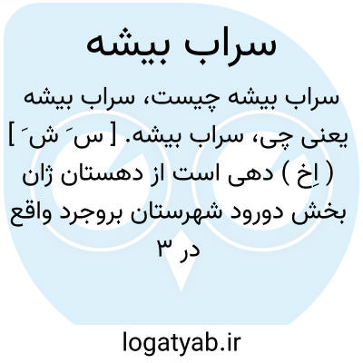 سراب بیشه. [ س َ ش َ ] ( اِخ ) دهی است از دهستان ژان بخش دورود شهرستان بروجرد واقع در 3 هزارگزی جنوب دورود و کنار راه مالرو دورود به انوبکا. هوای آن معتدل و دارای 117 تن سکنه است. آب آنجا از رودخانه و قنات تأمین می شود. محصول آنجا غلات و شغل اهالی زراعت و گله داری است. راه آن مالرو است. ( از فرهنگ جغرافیایی ایران ج 6 ).