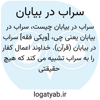 [ویکی فقه] سراب در بیابان (قرآن). خداوند اعمال کفار را به سراب تشبیه می کند که هیچ حقیقتی نداشته و غایت و هدفی که بدان منتهی شود ندارد.