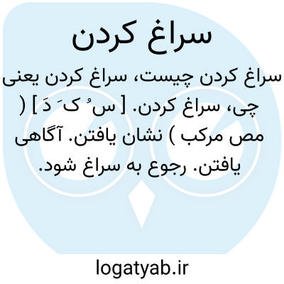 سراغ کردن. [ س ُ ک َ دَ ] ( مص مرکب ) نشان یافتن. آگاهی یافتن. رجوع به سراغ شود.
