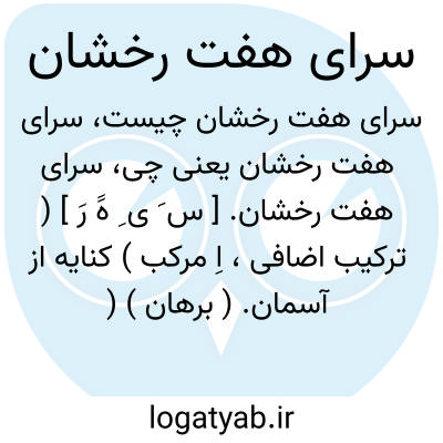 سرای هفت رخشان. [ س َ ی ِ هََ رَ ] ( ترکیب اضافی، اِ مرکب ) کنایه از آسمان. ( برهان ) ( آنندراج ).