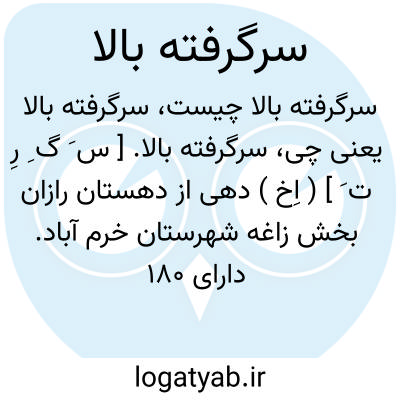 سرگرفته بالا. [ س َ گ ِ رِ ت َ ] ( اِخ ) دهی از دهستان رازان بخش زاغه شهرستان خرم آباد. دارای 180 تن سکنه. آب آن از سراب سرگرفته. محصول آن غلات و لبنیات است. شغل اهالی زراعت و گله داری. صنایع دستی زنان فرش وجاجیم بافی است. ( از فرهنگ جغرافیائی ایران ج 6 ).