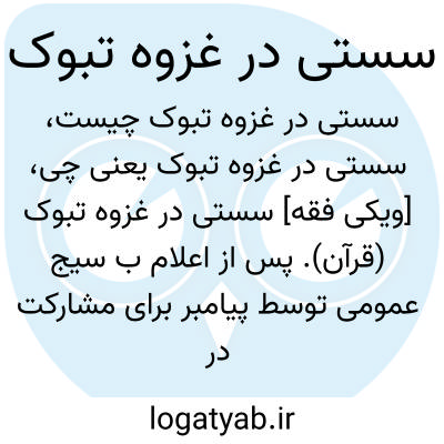 [ویکی فقه] سستی در غزوه تبوک (قرآن). پس از اعلام ب سیج عمومی توسط پیامبر برای مشارکت در جنگ تبوک برخی از مومنین بخاطر دشواری هایی که فراروی خود می دیدند دچار نوعی سستی شدند که قرآن کریم از حال آنها سخن به میان آورده است.