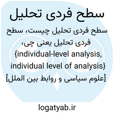 {individual-level analysis, individual level of analysis} [علوم سیاسی و روابط بین الملل] رویکرد تحلیلی به سیاسیات جهان که بر روان شناسی فردی کنشگران، به ویژه رهبران سیاسی، در عرصۀ سیاست خارجی تأکید دارد