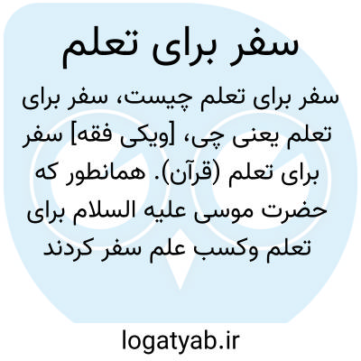 [ویکی فقه] سفر برای تعلم (قرآن). همانطور که حضرت موسی علیه السلام برای تعلم وکسب علم سفر کردند مؤمنان هم ضرورت دارد برای تعلم مسافرت کنند.