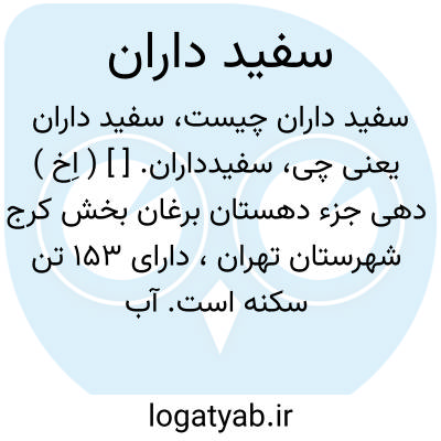 سفیدداران. [ ] ( اِخ ) دهی جزء دهستان برغان بخش کرج شهرستان تهران، دارای 153 تن سکنه است. آب آن از چشمه سار و رود محلی است. محصول آن غلات، باغات میوه، لبنیات، عسل، قلمستان و شغل اهالی زراعت و گله داری است. ( از فرهنگ جغرافیایی ایران ج 1 ).