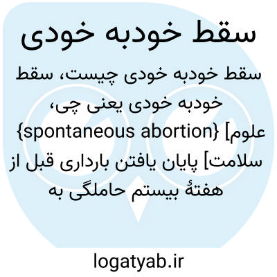 {spontaneous abortion} [علوم سلامت] پایان یافتن بارداری قبل از هفتۀ بیستم حاملگی به علت وجود ناهنجاری در باره یا مادر یا عوامل محیطی متـ. بچه انداختن miscarriage