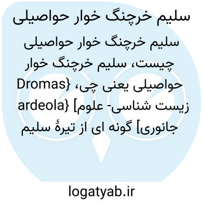 {Dromas ardeola} [زیست شناسی- علوم جانوری] گونه ای از تیرۀ سلیم خرچنگ خواریان و راستۀ سلیم سانان با پاهای بلند آبی- خاکستری و پرهای زینتی سیاه و سفید و منقار سنگین و بزرگ و قوی و خنجرشکل