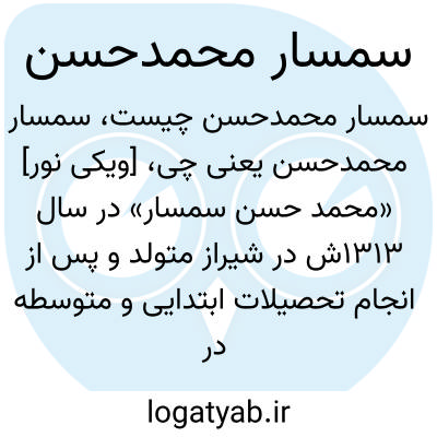 💡 محمدحسن سمسار (زاده ۱۲ مهر ۱۳۱۳) شیراز، محقق، تاریخ‌دان، تاریخ‌نگار و کارشناس ارشد تاریخ از دانشگاه تهران است.