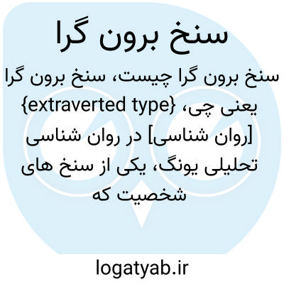 {extraverted type} [روان شناسی] در روان شناسی تحلیلی یونگ، یکی از سنخ های شخصیت که توصیف گر فردی است که نگرش ها و ارزش ها و علائق او معطوف به محیط بیرونی است