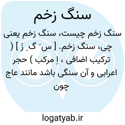 سنگ زخم. [ س َ گ ِ زَ ] ( ترکیب اضافی، اِ مرکب ) حجر اعرابی و آن سنگی باشد مانند عاج چون بسحاق کنند و بر موضعی که خون از آن روان باشد بریزند بازدارد و آنرا شکرسنگ هم میگویند و حجرالعاج همان است. ( برهان ). سنگ جراحت. ( آنندراج ). اسم فارسی حجرالعاج است. ( تحفه حکیم مؤمن ).