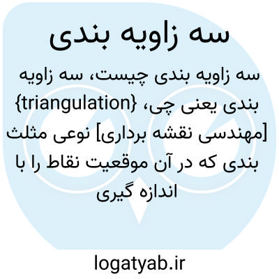 {triangulation} [مهندسی نقشه برداری] نوعی مثلث بندی که در آن موقعیت نقاط را با اندازه گیری زوایای مثلث های تشکیل شده بین نقاط تعیین می کنند