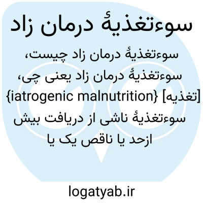 {iatrogenic malnutrition} [تغذیه] سوءتغذیۀ ناشی از دریافت بیش ازحد یا ناقص یک یا چند مادۀ مُغَذی که در نتیجۀ بی دقتی یا ضعف عملکرد کارکنان درمانی رخ می دهد
